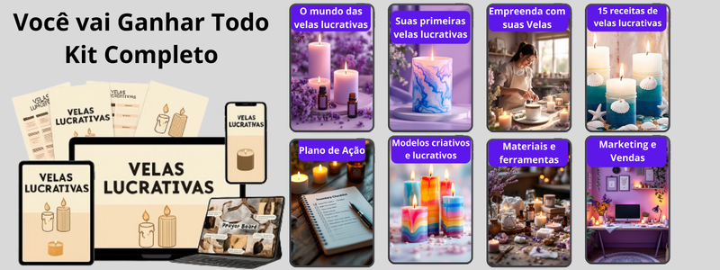 Aprenderá passo a passo como produzir suas primeiras velas. desde o derretimento da cera, escolha dos pavios e corantes, até o momento certo de desenformar e embalar suas criações.